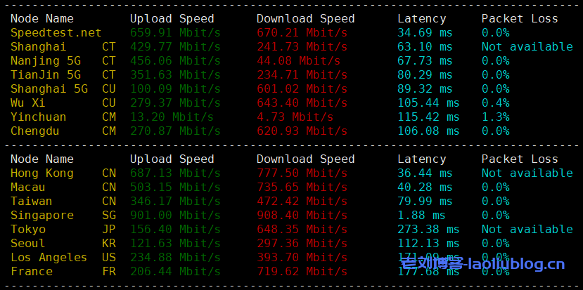 80个节点测试的机器网络延迟情况,可以看到香港延迟最低,这也说明了IP是香港的,这和官方描述“HK IP”相符。